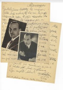 TOFANO Sergio, Lettera autografa firmata, insieme a 1 lettera dattiloscritta con firma autografa inviate a Mino Doletti e 2 foto-cartoline con firme autografe. Non datate, ma anni '20.