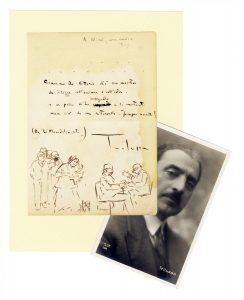 TRILUSSA [pseud. Carlo Alberto Salustri], Testo poetico autografo firmato con un disegno del poeta. Non datato.