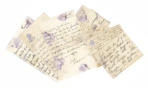 Manoscritti a inchiostro nero. 11 pagine scritte in totale. Tracce di umidità. 3 buste parzialmente conservate.