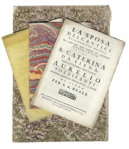 Alcune brossure in carta marmorizzata e a motivi floreali dell'epoca.