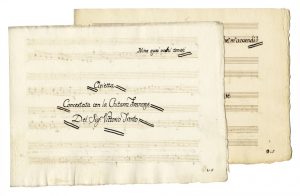 • II DOCUMENTO : Il manoscritto musicale contiene i principi delle lezioni del conte Federico Moretti (1769-1839), Nato a Napoli, si trasferì a Madrid nel 1794. Arruolatosi nella Reales, Guardias Valonas, creò la Legione dei Volontari Stranieri nel 1808. Fu compositore e chitarrista. La figura influì sullo sviluppo della tecnica e dell'estetica della chitarra.