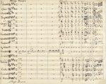 Partitura d'orchestra. Manoscritto a inchiostro marrone scuro su 18 pentagrammi.