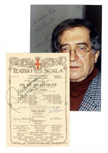 Id. Firma autografa su locandina del Teatro alla Scala per l'opera del compositore "Un re in ascolto" (1986). (2)