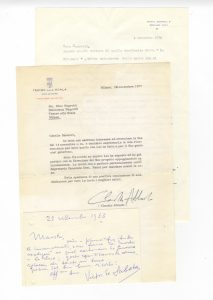 Raccolta di oltre 120 tra lettere, citazioni musicali, cartoline, fogli di appunti, biglietti da visita, dediche e firme autografe, molte relative alla collaborazione di questi artisti con il Teatro alla Scala. XX secolo.