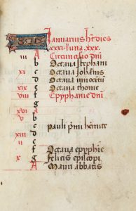 Nel calendario compaiono alcuni santi come St. Alphenge arcivescovo di Canterbury (19 aprile) e St. Machutus (o Maclovio, 15 novembre) originari dell'Inghilterra che fanno propendere per una possibile provenienza inglese.