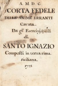A.M. D. G. Scorta fedele delle anime erranti Cavata dagli Esercizi Spirituali di Santo Ignazio Composti in terza rima siciliana 1728.