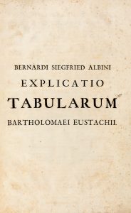 ALBINUS BERNHARD SIEGFRIED, Explicatio tabularum anatomicarum Bartholomaei Eustachii, anatomici summi. Accedit tabularum editio nova. Leidae Batavorum : apud Joannem Arnoldum Langeraak et Joannem & Hermannum Verbeek, 1744.