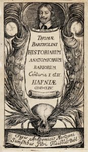 BARTHOLIN Thomas, Historiarum anatomicarum rariorum centuria I et II. Hafniae : Typis academicis Martzani, Sumptibus Petri Hauboldt, 1654.