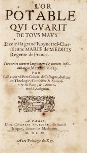 CASTAIGNE Gabriel de, L'or potable qui guarit de tous maux... A Paris : chez Charles Sevestre, 1611.