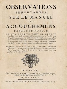 DEVENTER Hendrik van, Observations importantes sur le manuel des accouchemens. Première partie (-seconde)... A Paris : chez Pierre-Francois Giffart, 1734.