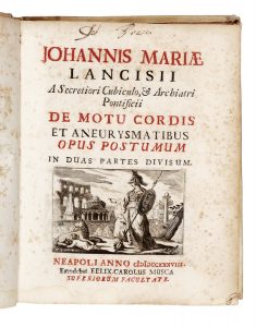 LANCISI Giovanni Maria, De motu cordis et aneurysmatibus opus posthumum in duas partes divisum. Neapoli : excudebat Felix-Carolus Musca, 1738.