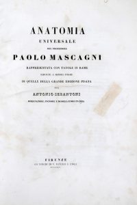 MASCAGNI Paolo, Anatomia universale [...] rappresentata con tavole in rame ridotte a minori forme di quelle della grande edizione pisana per Antonio Serantoni... In Firenze : co' Torchi di V. Batelli e figli, 1833.