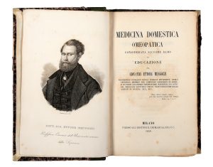 MENGOZZI Giovanni Ettore, Medicina domestica omeopatica considerata siccome ramo di educazione... Milano : presso gli editori G. De Maddalena e C., 1859.
