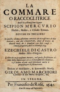 MERCURIO Girolamo, La commare o raccoglitrice dell'eccellentissimo Scipion Mercurio [...] divisa in tre libri. In questa ultima edittione corretta & accresciuta di due trattati... In Verona : per Francesco de' Rossi, 1645.