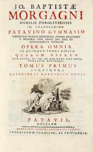 MORGAGNI Giovanni Battista, Opera omnia in quinque tomos divisa. Quorum operum quae antea, et ubi, et quae nunc sint edita, praefatio ostendet. Tomus primus (-quintus). Patavii : Sumptibus Josephi Remondini, 1765.