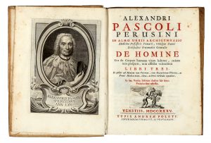 PASCOLI Alessandro, De homine sive de corpore humano vitam habente, ratione tum prosperae, tum afflictae valetudinis libri tres... Venetiis : typis Andreae Poleti, 1735.
