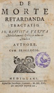 Vertua Giovanni Battista, De morte retardanda tractatio. Mediolani : apud Io. Iacobum Cumum, 1616.