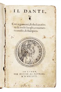 Alighieri DANTE, Il Dante. Con Argomenti, & dechiaratione de molti luoghi, novamente revisto, & stampato. In Lione : Per Giovanni di Tournes, 1547.