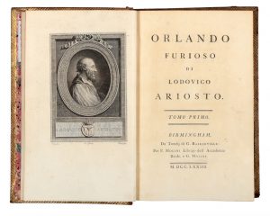 ARIOSTO Ludovico, Orlando furioso. Tomo primo (-quarto). Birmingham : Da' Torchj di G. Baskerville : Per P. Molini Librajo dell'Accademia Reale, e G. Molini, 1773.