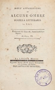 BUONAFEDE Appiano, Dell'apparizione di alcune ombre novella letteraria. In Lucca : appresso Jacopo Giusti nuovo stampatore alla Colonna del Palio, 1758.