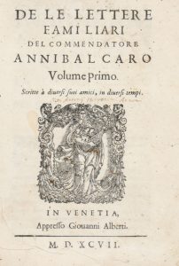 CARO Annibale, De le lettere familiari [...]. Volume primo (-secondo). Scritte a diversi suoi amici, in diversi tempi. In Venezia : appresso Giovanni Alberti, 1597.