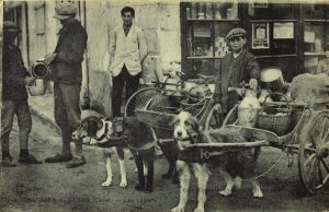 Loiret - Chatillon sur Loire 2 cpa attelages de chiens (laitiers, entrée du pont)