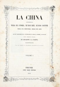 LA FARINA Giuseppe, La China considerata nella sua storia, ne' suoi riti, ne' suoi costumi [...]. Volume I (-IV). Firenze : Luigi Bardi, 1843-47.