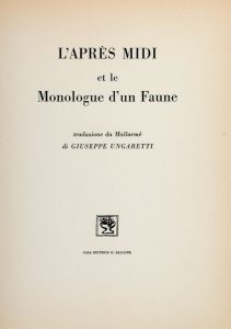 MALLARMÉ Stéphane, L'après midi et le monologue d'un faune. Traduzione di Giuseppe Ungaretti. Milano : il Balcone, 1947.