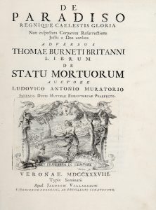 MURATORI Lodovico Antonio, De Paradiso regnique Caelestis Gloria... Veronae : Typis Seminarii apud Jacobum Vallarsium, 1738.