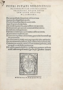 PITATI Pietro, Paschales atque noviluniorum mensurni canones... (Al colophon : ) Venetiis : in officina Lucaeantonii Iuntae, 1537 mensi Martio.
