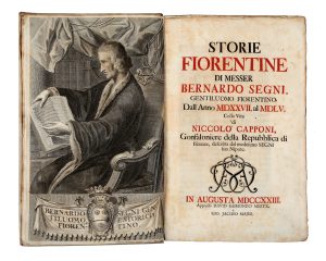 SEGNI Bernardo, Storie fiorentine [...] dall'anno 1527 al 1555. Colla vita di Niccolò Capponi... In Augusta [Firenze] : Appresso David Raimondo Mertz e Giovanni Giacomo Majer, 1723.