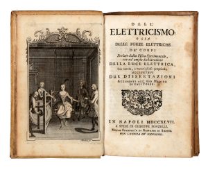 SGUARIO Eusebio, Dell'Elettricismo : o sia delle forze elettriche de' corpi... In Napoli : a spese di Giuseppe Ponzelli, nella Stamperia di Giovanni di Simone, 1747.