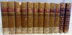 (Dos brunis, coiffes, coupes et coins faibles, manque à 1 dos, mouillures éparses).