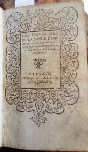 26 - [BOUCHET (Jean)] LES TRIUMPHES de la noble dame amoureuse, & l'art d'honnestement aimer, composés par le traverseur des voies périlleuses – Lovain, Jean Bogard, 1563 – in-8 : [8], 346 f., [6] f. – veau brun ancien, décor à la Duseuil...