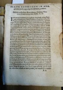 37 - ERASME Collectanea adagiorum veterum ... – (Selestat, Lazare Schurer, 1521) à la marque d'imprimeur – in-4 : [5] (/6 f., sans le f. A1), 76, [10] f. – broché, dans une couverture vélin souple ancienne. (mouillure colorée marginale, 2...