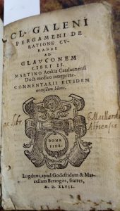 40 - GALIEN (Claude) De ratione curandi ad glauconem libri II, Martino Acakia doc. med. interprete. Commentiarii ejusdem in eosdem libros – Lyon, Godefreidum & Marcellum Beringos, 1547 – in-16 : 412 p. – vélin souple à petit recouvrement...