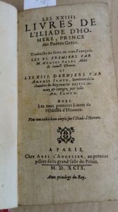47 - HOMERE Les XXIIII livres de l'Iliade... traduicts de grec vers françois les XI premiers par M. Hugues Salel ... et les XIII derniers par Amadis Jamyn... avec les trois premiers livres de l'Odyssée d'Homere – Paris, l'Angelier, 1599 – in-12...