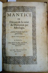 68 - TYARD (Pontus de, seigneur de Bissy) Mantice ou Discours de la vérité de divination par astrologie. 2e édition augmentée – Paris, Galiot du Pré, s.d. [ca 1575] – in-4 : titre dans encadrement typo., 114, [2] p. (errata) – reliure...