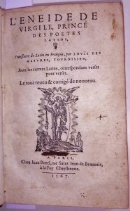 69 - VIRGILE L'Eneide, translatée de latin en françois par Louïs des Masures, tournisien, avec les carmes latins, correspondans verset pour verset. Le tout revu & corrigé de nouveau – Paris, Jean Borel, 1567 – in-8 : [8], 672 p. – basane...