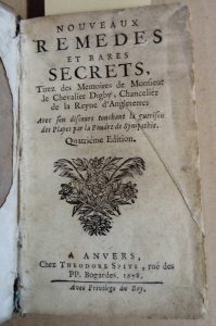 86 - DIGBY (Kenelm) Nouveaux remèdes et rares secrets tirez des mémoires de Monsieur le chevalier Digby – Anvers, Theodore Spits, 1678 – in-12 : 402 p., [6] p. – vélin ancien, titre ms. au dos. (vélin sali, 1 garde arrachée en début du...