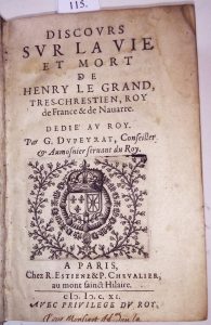 115 - RECUEIL FACTICE D'ORAISONS FUNÈBRES in-8 : en 1 volume vélin rigide teinté moucheté rouge et noir. DUPEYRAT (G.) Discours sur la vie et la mort d'Henri le grand – Paris, Chevalier, 1611 – in-8 : lim., 205, [17] [3 bl.] p. – CHOPPIN...