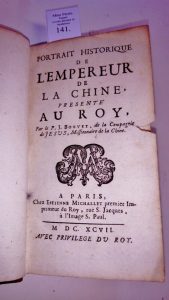141 - [CHINE] BOUVET (Joachim, s.j.) Portrait historique de l'empereur de Chine présenté au roy – Paris, Estienne Michallet, 1697 – in-12 : 264, [6] p. les 3 dernières bl. – veau brun ancien, dos orné à nerfs, p. de titre grenat. (usagé,...