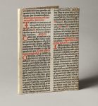 l'imprimeur gravée sur bois au dernier f., reliure moderne demi-parchemin, dos lisse et muet, plats couverts d'un feuillet ancien imprimé sur 2 col. en rouge et noir, tranches rouges (infimes rousseurs).
