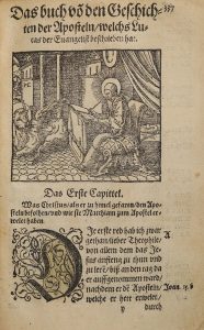 Rare édition illustrée d'une traduction allemande du Nouveau Testament, qui demeura populaire en Allemagne durant plus de 250 ans. La version est du dominicain Johann Dietenberger (vers 1475-1537) et parut pour la première fois en 1534.
