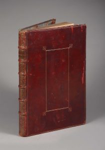 la suite] : Les portraits de quelques personnes signalées en piété de l'Ordre des Minimes. Avec leurs éloges 1668. Un ouvrage et une suite gravée en 1 vol. in-folio, [6] f., XIX-171 p.,[8] f. (le dernier blanc) ; 2 titres frontispices gravé par N. Poilly, 1 planche gravée par Abraham Bosse, planches composées de 4 vignettes numérotées de III à XXIII, 1 planche gr. par N. Poilly (soit 1 frontispice et 24 planches), culs-de-lampe gravés sur bois ; 3 planches (titre gravé, avis, titre-frontispice), 15 planches de portraits, la plupart d'après Simon Vouet ou Charles Le Brun, reliure époque maroquin rouge, dos à 6 nerfs, pièce de titre maroquin havane, caissons finement ornés, plats décorés à la Duseuil, roulettes aux coupes et bords des contreplats, tranches dorées (coiffes et coins émoussés, frott., épidermures ; papier du texte le plus souvent bruni).