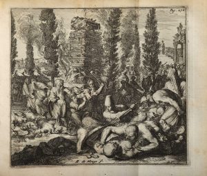 Édition illustrée d'un frontispice et de 4 planches dépliantes, le tout gravé sur cuivre par Romeyn de Hooghe. Les deux dernières parties, dont le Funus Parasiticum de Nicolas Rigault (1577-1654, bibliothécaire de Louis XIII) sont précédées d'une page de titre particulière.