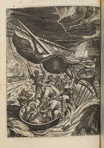 titre gravé orné d'un encadrement, et une planche gravée en frontispice), 519 p., [7] f. (index), figures gravées sur cuivre, lettrines gravées sur bois, veau brun époque, dos à 4 nerfs, restes d'étiquettes, marque à froid sur le caisson central, plats ornés d'un jeu de roulettes à froid et portant chacun 5 boulons, traces de fermoirs (qq. piqûres de vers au dos ; brunissures éparses et mouill. dans certaines marges de tête, les coins des pages 101 à 106 brulés avec manque angulaire de texte et gravure, fig. p. 33 déchirée sans perte, accroc restauré p.129, taches p.218-19).