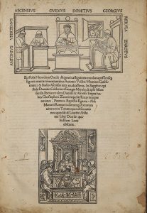 Édition comportant notamment des commentaires de Josse Bade et d'Alde Manuce. La page de titre est ornée de 2 vignettes, et à la fin se trouve la marque de l'imprimeur ; l'illustration se compose de 20 vignettes - chacune réunissant 3 figures à la manière d'une bande dessinée ; et d'une figure à mi-page : toutes ces illustrations sont gravées sur bois. L'on trouve également une figure typographiée. Notes anciennes en pied de 3 pages.