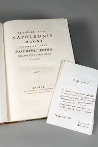 [SALVETTI (Filippo Timoteo de)]. De Vita et Gestis Napoleonis magni commentarius Joachimo primo neapolitanorum regi dicatus. Romae, Ex officina Perego-Salvionia, 1810. In-folio, 241 p., demi-basane fauve de l'époque, dos lisse orné de roulettes...