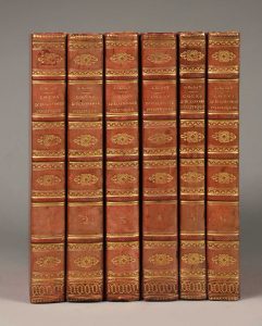 SAY (Jean-Baptiste). Cours complet d'économie politique pratique. Paris, Rapilly, 1828-1829. 6 vol. in-8, demi-veau cerise de l'époque, dos à 5 nerfs et finement orné, auteur, titre et tomaison dorés, marges conservées (dos passés, défauts...